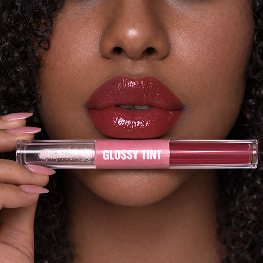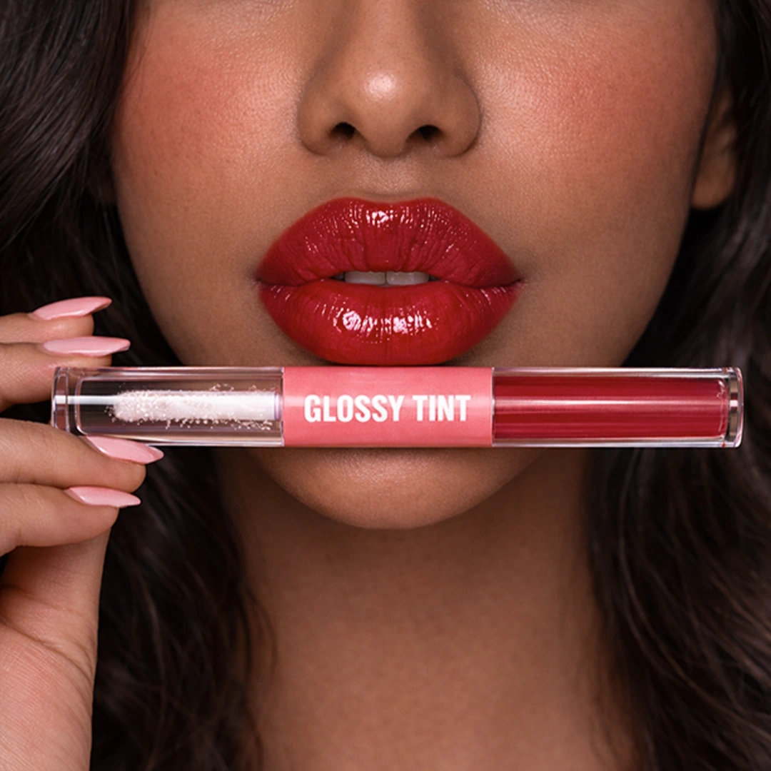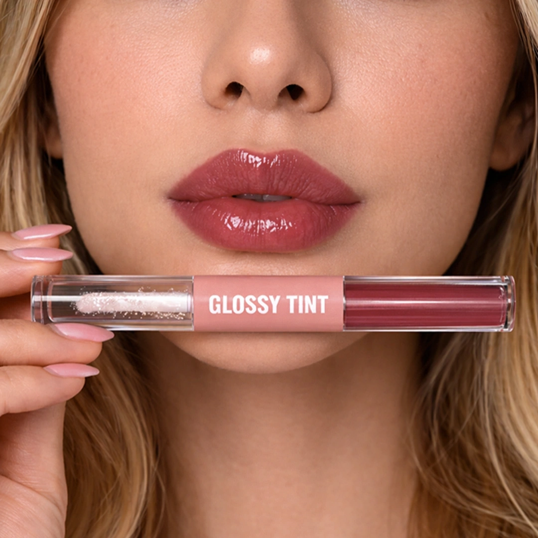 Glossy Tint is a 2-in-1 lip essential that combines vibrant color with nourishing care in one sleek tube.